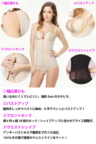 取り外しOK! 脇肉をしっかりバストに納め、U字でぐいっとバストアップ! 横6列x縦18段のホック/シェイプアップに合わせてサイズ調整可。