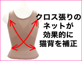 体型を健康的に補正するには猫背を補正してあげるのが一番!メリハリのある健康なボディをGET! 1.『胸』 脇のお肉をリフトアップ効果で 的確にバストアップ! 2.『脇』 サイドの2本のボーンが背中とお腹を 引きあって、脇のお肉を引き締めます 3.『お腹』2枚貼り合わせたパワーネットが おなかのお肉を逃がさずスッキリ 引き締めます。